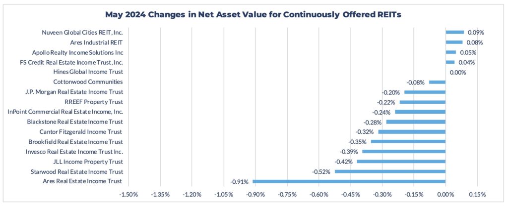 While the NAV increased slightly in each of the first three months in 2024, (representing the first increases since August 2023), the NAV decreased by 0.28% from April to May in 2024. Blackstone REITs share redemptions began to exceed the 2.0% monthly percent of NAV caps in November 2023 and February 2024 was the first month since that all redemption requests were met. As the largest nontraded REIT by far, with over $57.3 billion in cumulative net asset value as of May 31, 2024, Blackstone REIT’s valuations are indicative of the trend across the sixteen continuously offered REITs.