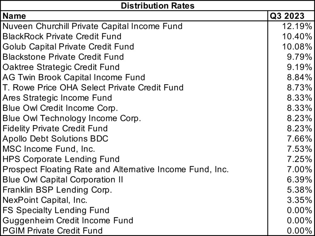 The distribution rates for those and other credit-focused BDCs have also been impressive: