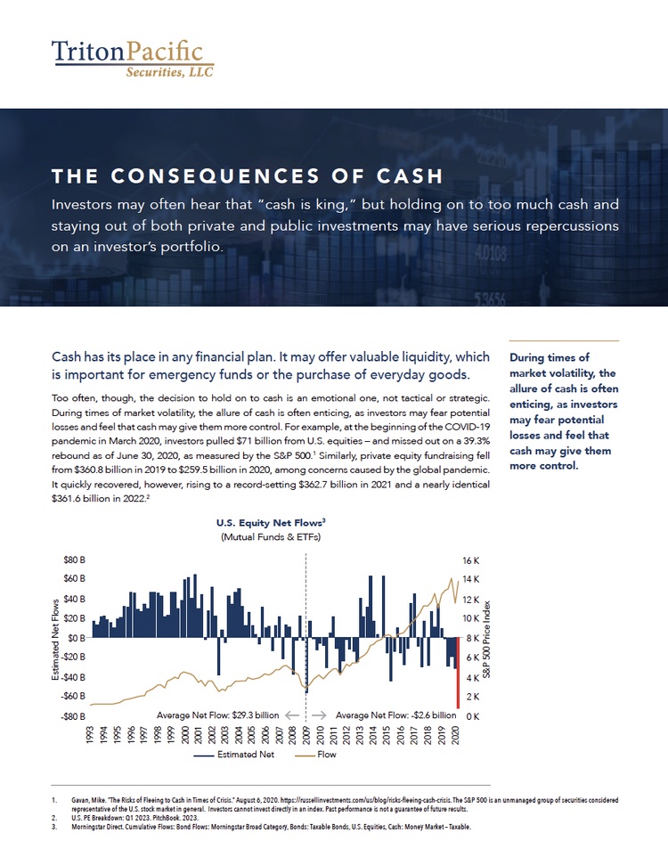 Investors may often hear that “cash is king,” but holding on to too much cash and staying out of both private and public investments may have serious repercussions on an investor’s portfolio.